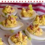 Lastly, garnish with a sprinkle of chopped green onion and salami if desired. You can make these eggs up to a day in advance, just cover and refrigerate.
